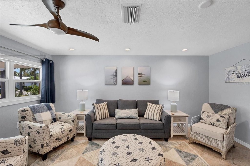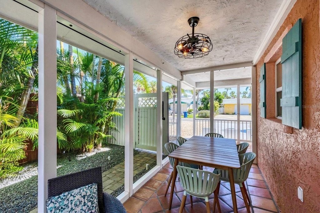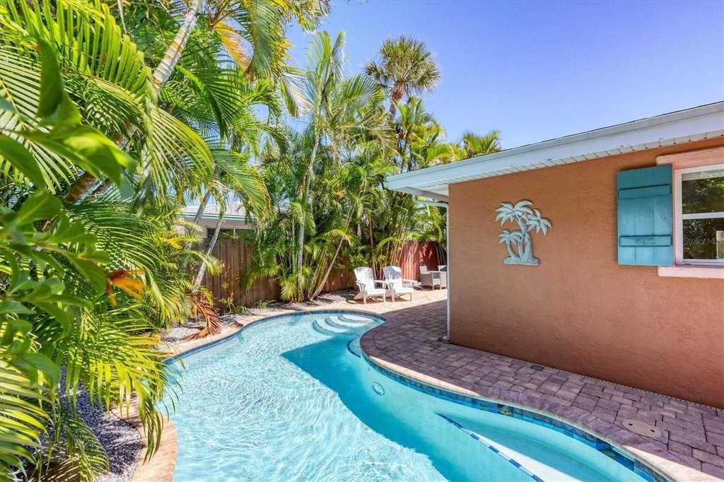 Welcome to Catching Waves, a charming coastal retreat nestled in the Heart of Holmes Beach on beautiful Anna Maria Island, FL. This fully furnished, COMPLETELY RENOVATED, 2-Bedroom, 2-Bathroom Villa provides the perfect blend of comfort and privacy. Surrounded by gently swaying palm trees on a quiet street, they spared no expense in the remaking of this home, top to bottom. Meticulously remodeled and decorated, the lucky new owner has nothing to do but enjoy their "like new" island getaway! Unwind on the spacious front porch or relax poolside by your sparkling private heated pool surrounded by mature landscaping. Step inside to the open concept living area and kitchen, with all new cabinets and appliances, which opens to a large, screened porch, ideal for dining or curling up with a coffee and an enjoyable book. Two spacious bedrooms with ample closet space, 2 full baths, and laundry with a new full-size washer and dryer complete the space. Walkable to the beach, and conveniently located near a trolley stop, this coastal cutie is the perfect beachside escape in an ideal location. Zoned weekly rentals, it also presents an excellent investment opportunity. Do not miss your chance to own your slice of island paradise!